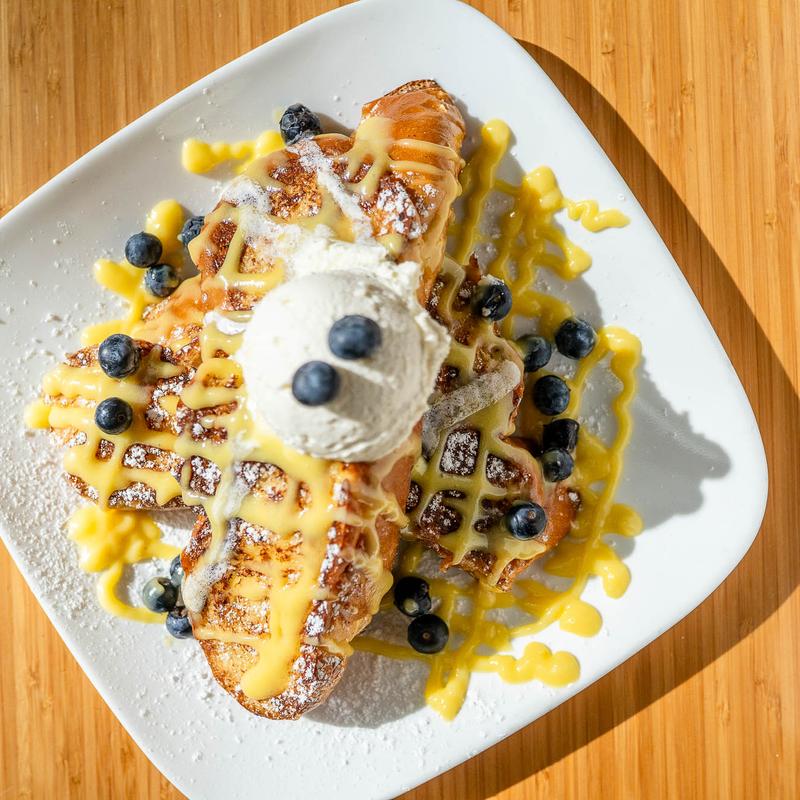 Add blueberries, lemon curd, and house-made whipped cream +$4.00 | Add bananas or pecans +$1.50 each | Add applewood bacon, ham or sausage +$4.00